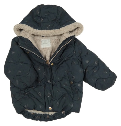 • Tmavosivá šušťáková prešívaná zimná bunda so srdiečkami a kapucňou Next