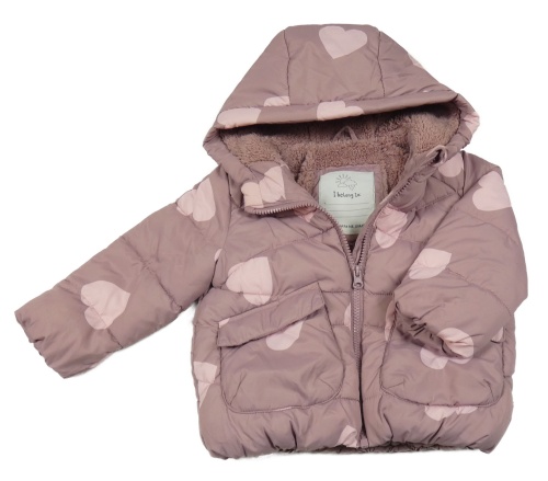 Ružová šušťáková prešívaná zimná bunda so srdiečkami a kapucňou Tu