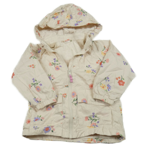 Smotanová plátenná jarná bunda s kvietkami a odopínacíá kapucňou H&M