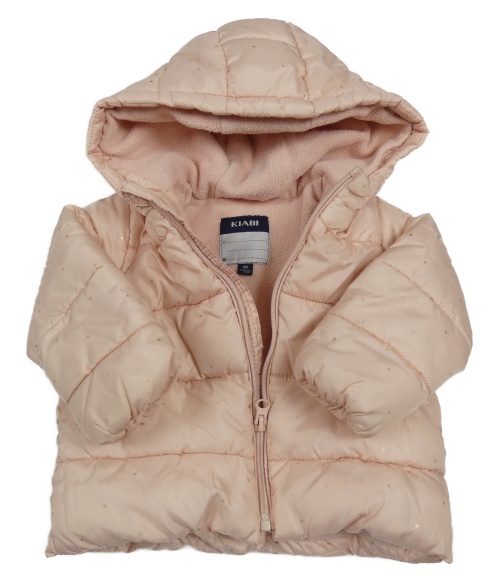 • Svetloružová bodkovaná á prešívaná šušťáková zimná bunda s kapucňou KIABI