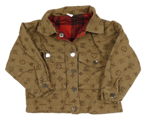 Hnedá rifľová jarná bunda s kvetmi a golierikom
