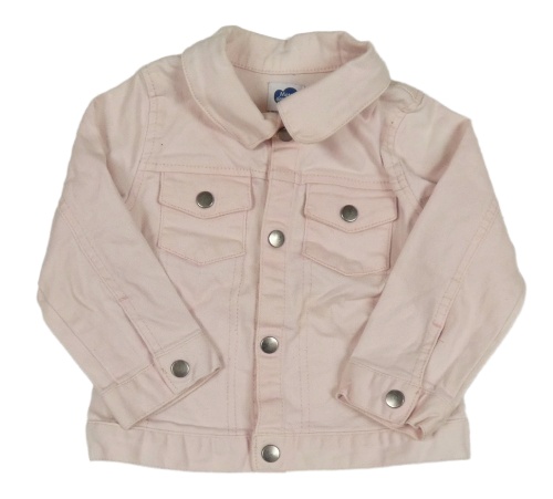Svetloružová tepláková rifľová bunda s límemčme Mots d'enfants