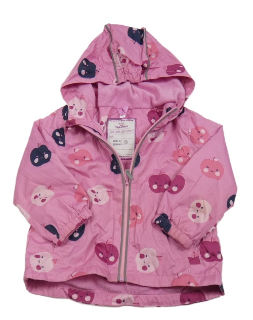 Ružová šušťáková lehce zateplená bunda s jablky a kapucňou Topomini