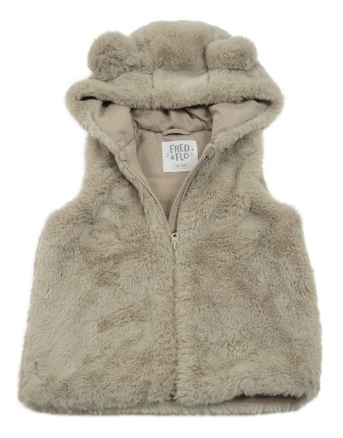Béžová kožušinová podšitá vesta s kapucňou F&F