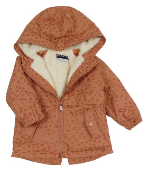 Staroružová vzorovaná nepromokavá zateplená bunda s kapucňou Kiabi