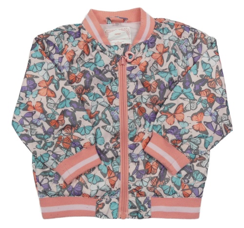 Svetloružová šušťáková jarná bunda s motýly