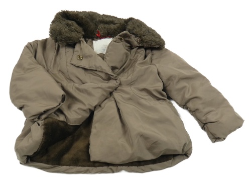 Hnedý šušťákový zimný kabát s kožušinovým golierom Zara
