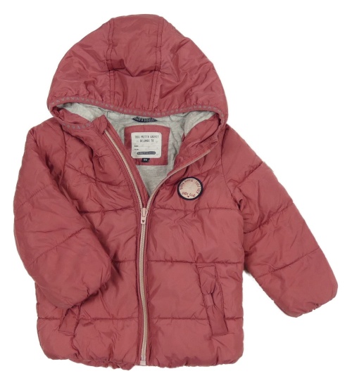 • Staroružová prešívaná šušťáková zimná bunda s nášivkou a kapucňou C&A