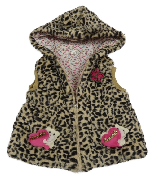 Béžovo-hnedá vzorovaná leopardí chlpatá podšitá vesta s kapucňou