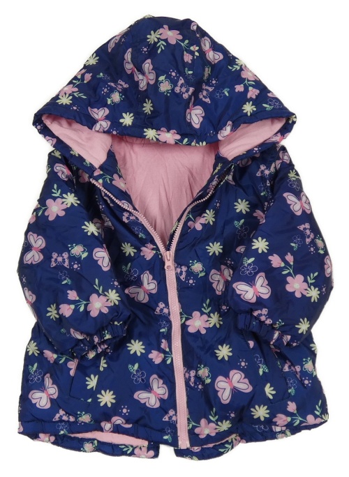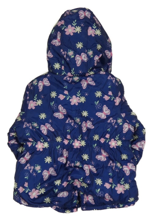 Modrá kvetinová šušťáková zimná bunda s motýlikmi a kapucňou Ergee