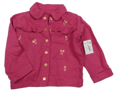 Nové - Fuchsiová rifľová bunda s kvietkami Nutmeg