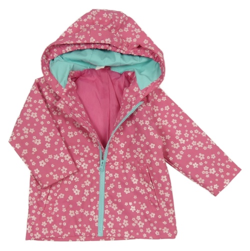 Ružová kvietkovana nepromokavá jarná bunda s kapucňou C&A