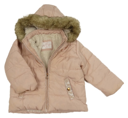 Svetloružová šušťáková prešívaná zimná bunda s kapucňou F&F