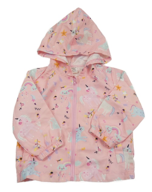 Ružová šušťáková bunda s jednorožcami a kapucňou
