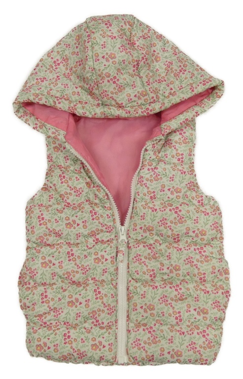 Svetlobéžová kvetovaná šušťáková zateplená vesta s kapucňou So Cute