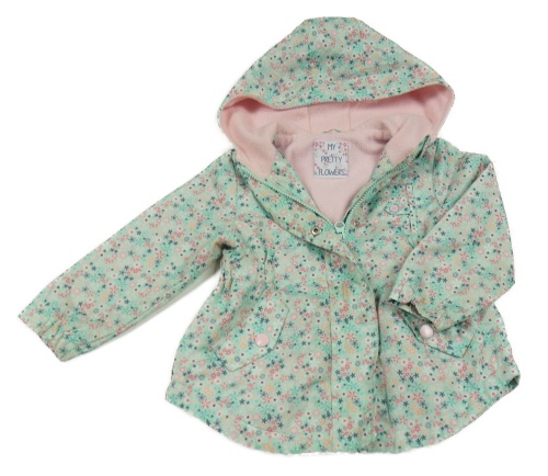 Svetlozelená šušťáková jarná parka s kvietkami a kapucňou St. Bernard