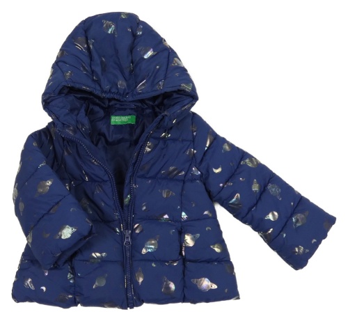 • Tmavomodrá šušťáková zimná bunda s planetami a kapucňou Benetton