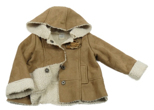 Hnedý semišový zateplený kabát s 3D květem a kapucňou ZARA