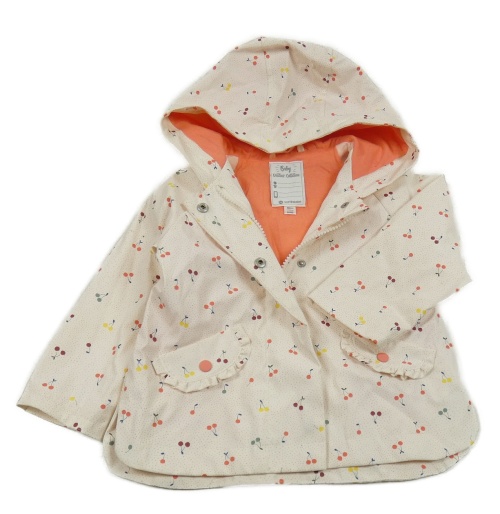 • Bielo-ružovo-farebná bodkovaná á vodeodolná jarná bunda s třešněmi a kapucňou Vertbaudet