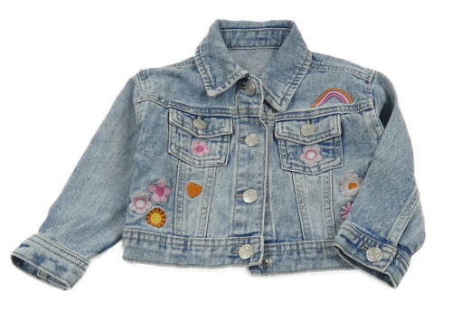 Svetlomodrá rifľová bunda s kvietkami a dúhou Nutmeg