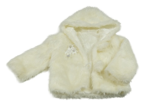 Krémová kožušinová podšitá bunda s kvetinami a kapucňou
