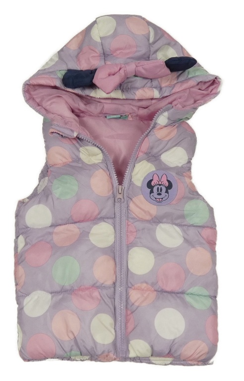Lila bodkovaná á šušťáková zateplená vesta s Minnie a kapucňou Disney