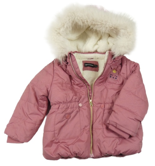 Ružová šušťáková zimná bunda s mačičkou a kapucňou s kožešinou