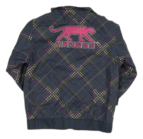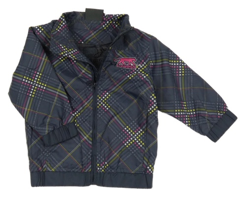 Tmavošedo-ružovo-žltá vzorovaná šušťáková jarná bunda s výšivkou