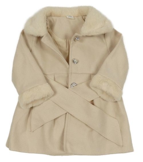 Smotanový flaušový podšitý kabát s kožešinou a golierikom a opaskom SHEIN