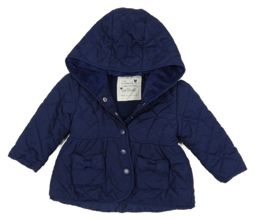 Tmavomodrá prešívaná šušťáková prechodná bunda s mašľami a kapucňou Matalan