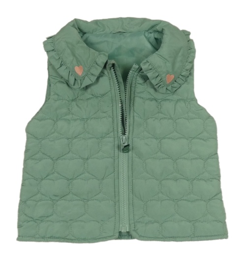 • Olivová šušťáková zateplená vesta s prešívanými srdiečkami a golierikom St. Bernard