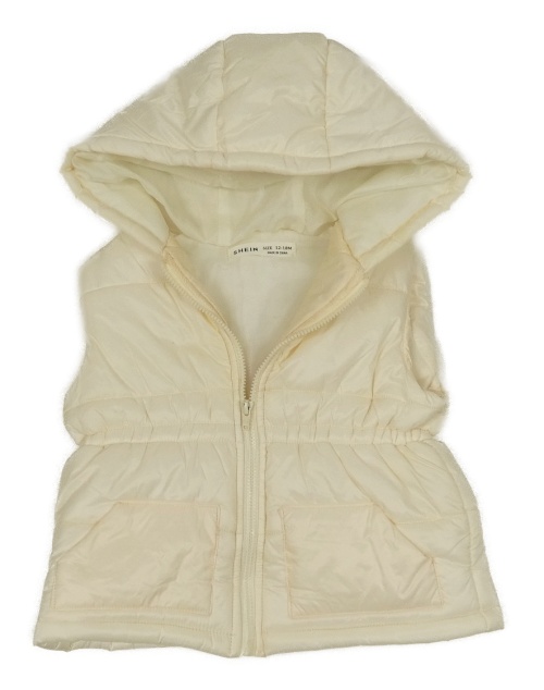 Smotanová prešívaná šušťáková zateplená vesta s kapucňou SHEIN