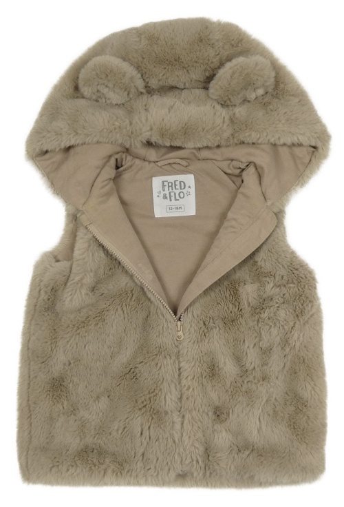 Béžovošedá kožušinová podšitá vesta s kapucňou s uškami F&F