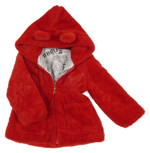 Červený kožešinový podšitý kabátek s kapucňou