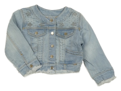 Svetlomodrá rifľová crop bunda s výšivkami Mayoral