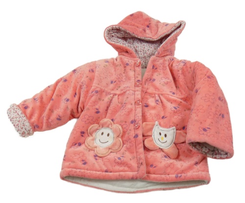 Růžový květovaný sametový zateplený kabátek s kapucňou