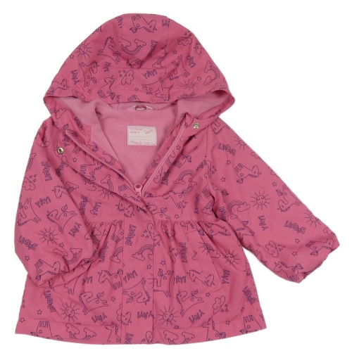 • Tmavoružová šušťáková jarná parka s jednorožcami a duhami a sluníčky a kapucňou M&Co