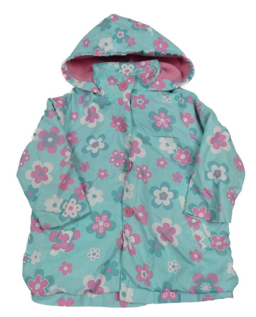 Světlemodro-ružová kvetovaná šušťáková jarná bunda s kapucňou E-Vie