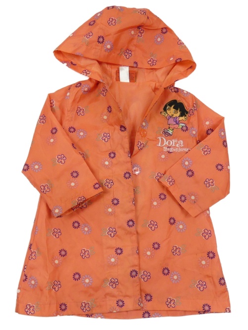 Korálový kvetovaný šušťákový jarný kabát s Dorou a kapucňou
