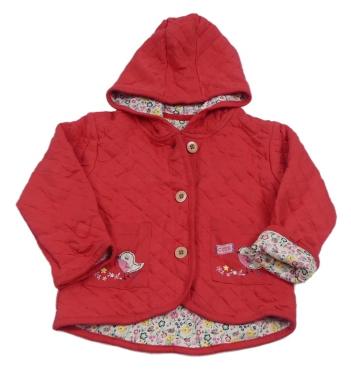 Růžový prošívaný podšitý kabátek s vtáčky a kapucňou