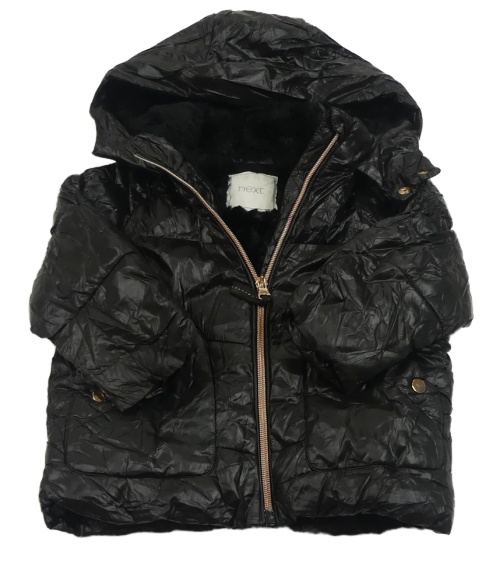 Čierna šušťáková lesklá zimná bunda s kapucňou Next