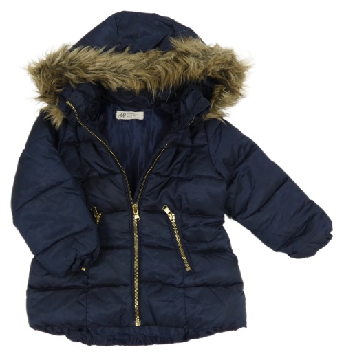 • Tmavomodrá prešívaná šušťáková zimná bunda s odopínacíá kapucňou s kožešinou H&M