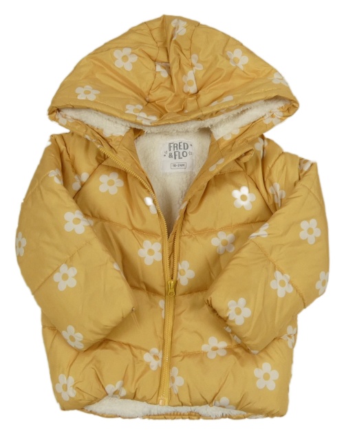 Okrová kvetovaná prešívaná šušťáková zimná bunda s kapucňou F&F