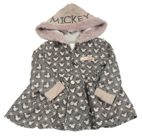 Sivo-svetloružový vzorovaný podšitý kabát s Minnie a kapucňou