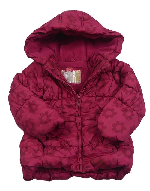 Tmavoružová kvetovaná šušťáková zimná bunda s kapucňou Mothercare