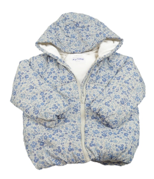 Bielo-svetlomodrá kvetovaná šušťáková zimná bunda s kapucňou Primark