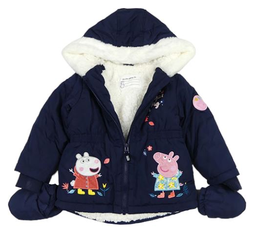 Tmavomodrá šušťáková zimná bunda s Peppa pig a kapucí+ rukavice Nutmeg