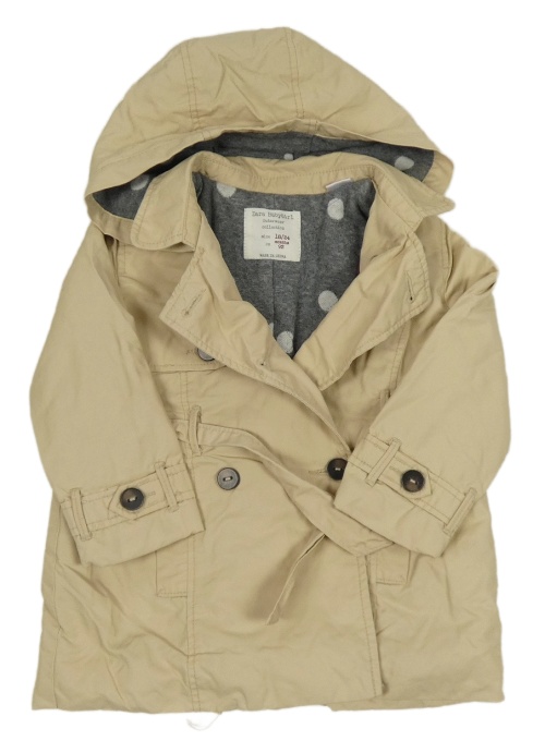 • Béžový šušťákový zateplený kabát s golierikom a kapucňou a opaskom Zara