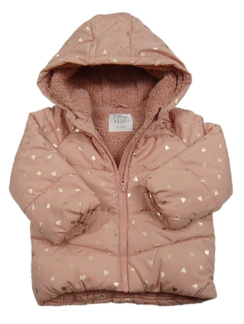 Staroružová šušťáková zimná bunda so srdiečkami a kapucňou F&F