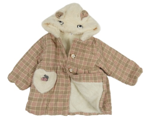 Starorůžovo-béžový kockovaný zateplený kabát s kapucňou